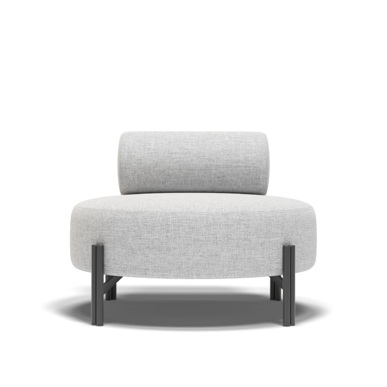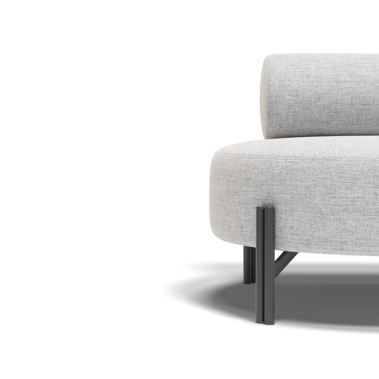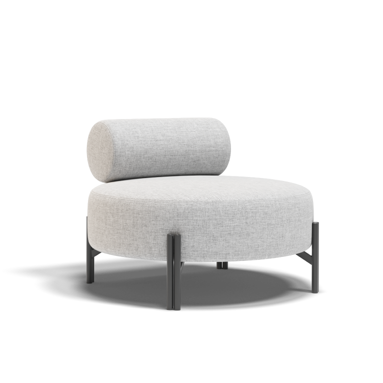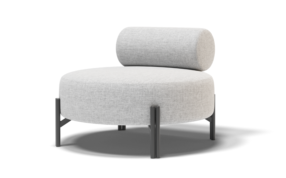 Forma rotundă, generoasă, definește puful Saturn și îl transformă într-un element vizual aparte. Șezutul amplu, completat de spătarul cilindric poziționat asimetric,